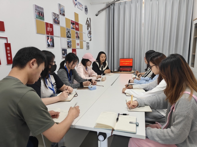 学生第一党支部书记彭佳姝传达了校院党委关于中央八项规定精神学习教育的要求,领学《习近平关于加强党的作风建设论述摘编》部分章节内容,引导青年学生党员深入学习领会习近平总书记关于加强党的作风建设重要论述的内涵精髓,结合实际案例,强调改进工作作风的重要性,作为学生党员要密切联系同学,掌握“从同学中来,到同学中去”的工作方法,将个体智慧升华为集体创造。进一步强化责任担当,主动作为,以良好的作风形象赢得同学们的信任和支持。