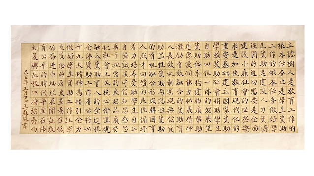 “国家资助,助我飞翔”为主题的书法及宣传画作品征集大赛借助书法及绘画等艺术形式深入了解国家资助政策,展示政策核心内容,将中华优秀传统文化与资助育人结合起来,让学生在设计、领悟艺术奥妙的同时,切身感受到国家资助的深远影响。