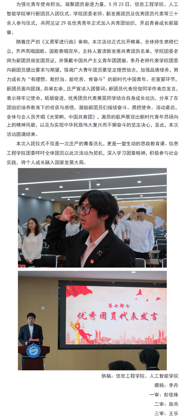 信息工程开元官方网站、人工智能开元官方网站隆重举行入团仪式