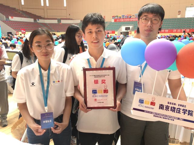 2019国际大学生程序设计竞赛中国邀请赛(南昌)暨国际丝绸之路程序设计竞赛(The 2019 ICPC China Nanchang National Invitational and International Silk-Road Programming Contest)6月2日在江西师范大学落下帷幕。我校信息工程开元官方网站学生蒋俊杰、顾维、刘翔昊组成的的“全体起立”队经过5个小时的艰苦比拼,最终以全场第48名的成绩获得银奖。