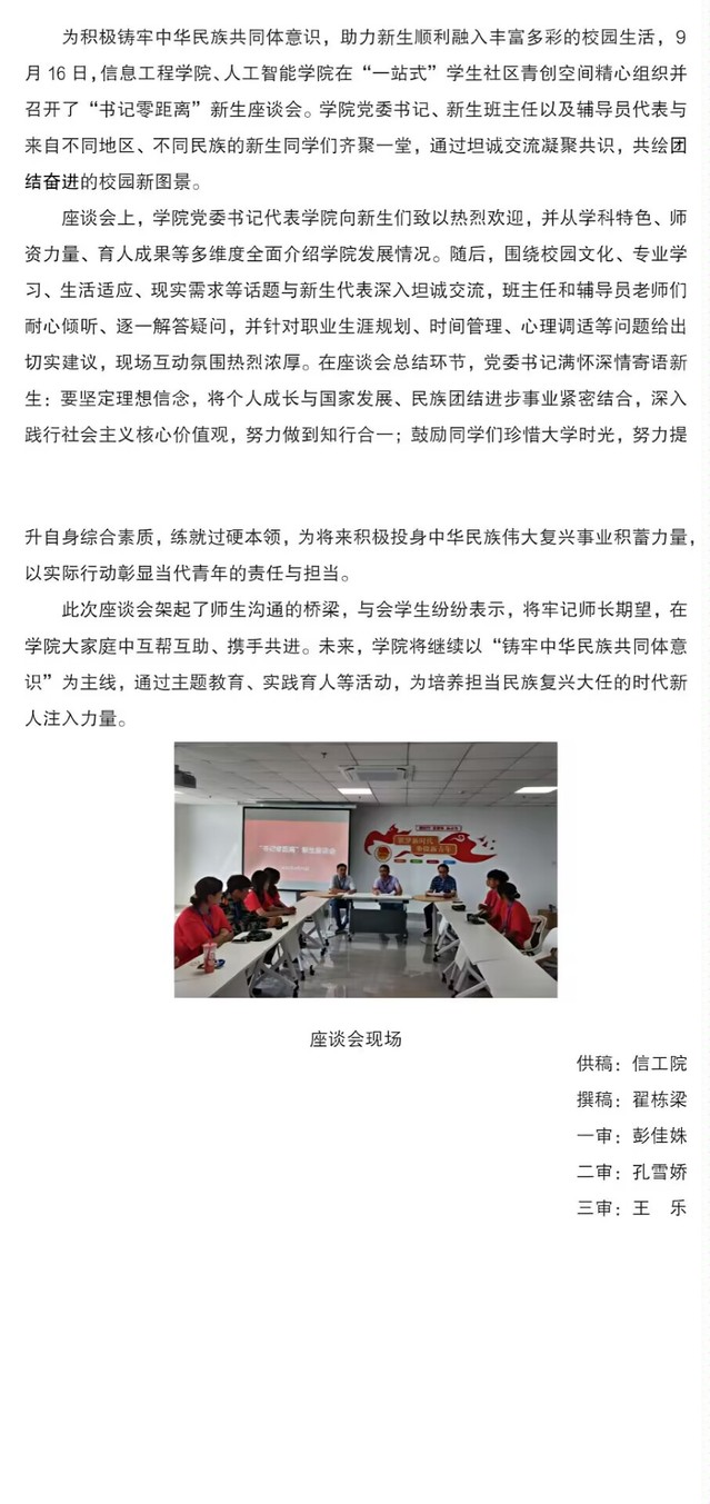 信工院在“一站式”学生社区开展“书记零距离”新生座谈会