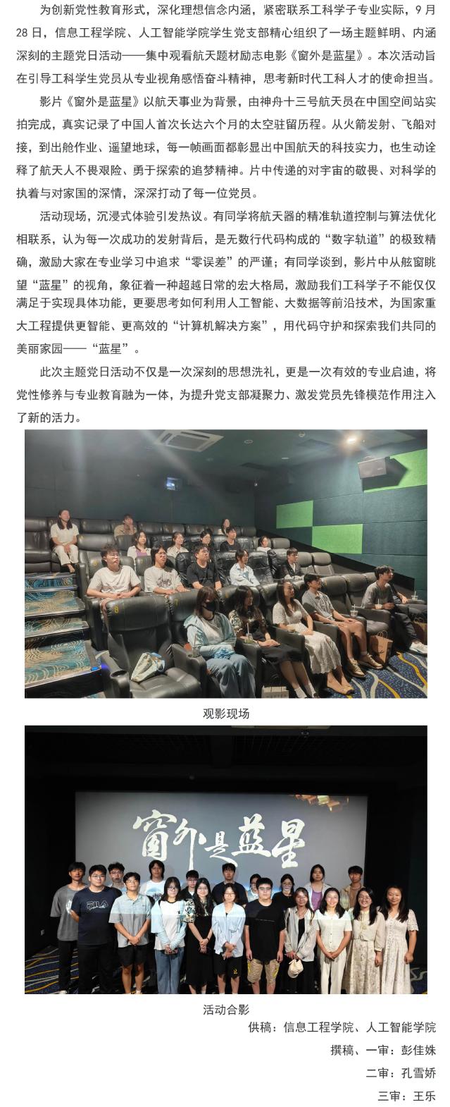 从代码到星辰:信工院学生党支部开展《窗外是蓝星》 观影主题党日活动,激发科技强国志向