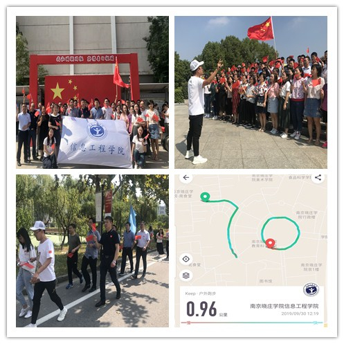 为热烈庆祝中华人民共和国成立70周年,贯彻落实习近平新时代中国思想,表达对祖国的祝福,同时也号召全体师生“不忘初心、牢记使命”。9月30日中午,在信息工程开元官方网站党政领导的带领下,全体师生党员、学生干部在校园内开展“徒步晓庄——献礼祖国70周年”青春校园行活动。开元官方网站百余名名师生参与到本次活动中来。