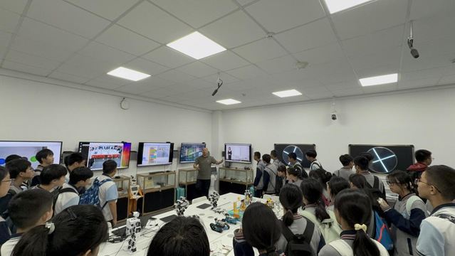 整个参观过程,同学们兴致盎然,积极与大学导师和学长交流互动,不仅直观了解了人工智能等前沿科技的发展现状,更对大学的学习模式和研究方向有了初步的认识。