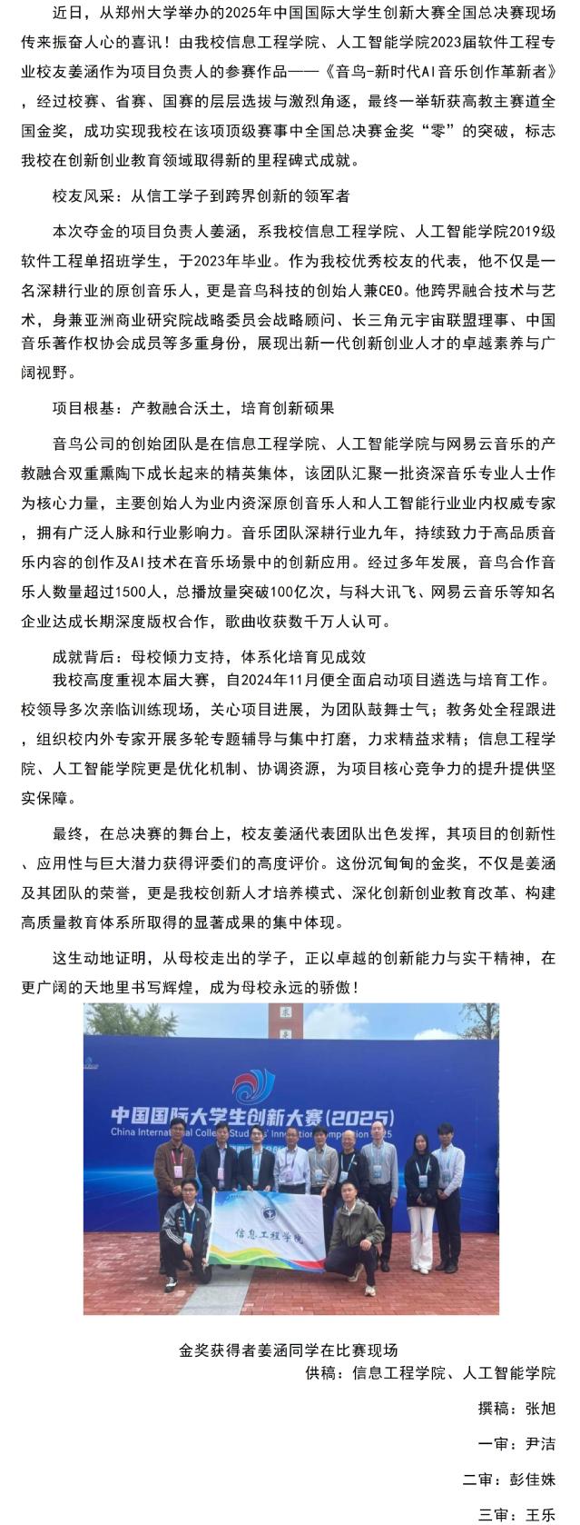 我校校友姜涵团队勇夺中国国际大学生创新大赛(2025)全国金奖,实现历史性突破