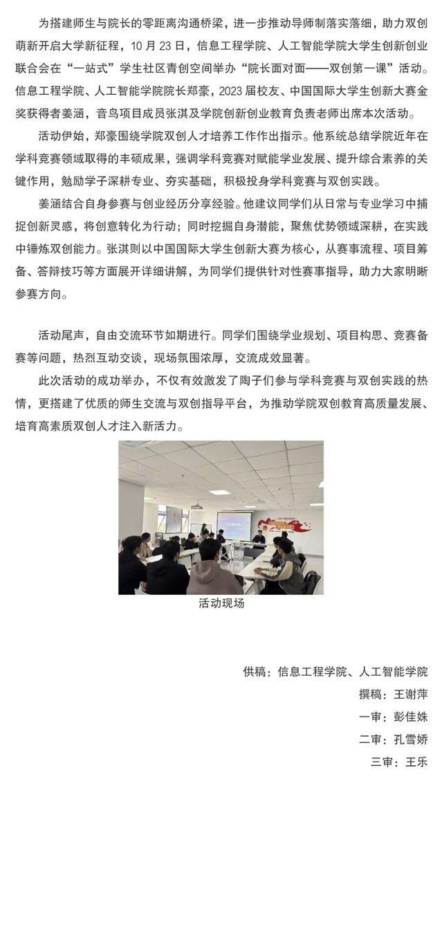 信工院在“一站式”学生社区开展“院长面对面——双创第一课“活动