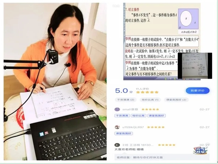 房宝娣老师线上开设了《概率论与数理统计》课程。在正式上课前,房老师在班级群里发布了课程PPT、教材等资料,指导学生下载安装软件系统并加入课程。房老师采用直播上课的方式,除了PPT页面外,还专门准备了一个小屏幕用于板书,保证每个知识点都讲得清清楚楚,帮助学生理解。课程结束后,还可以通过回放视频让学生多次回放学习,记录笔记。学生们一致表示能够接受这样的授课方式,上课氛围很好,干货满满。