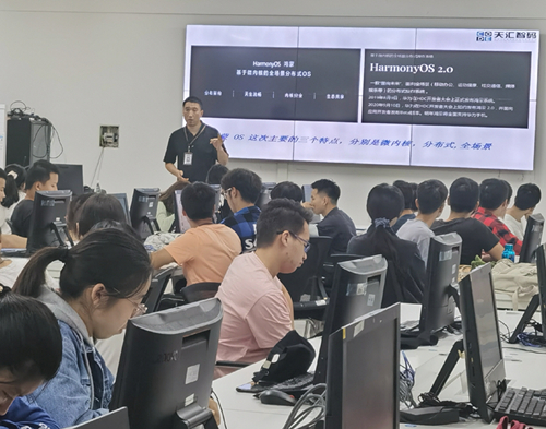 讲座中,李欣老师从当下热议的华为鸿蒙系统上市话题导入,结合多年行业经验,深入浅出地向同学们介绍了鸿蒙系统的搭建和开发模式,同时通过操作平台向同学们演示了鸿蒙系统搭建的部分实操过程。讲座内容新颖生动,现场互动频频,气氛热烈。