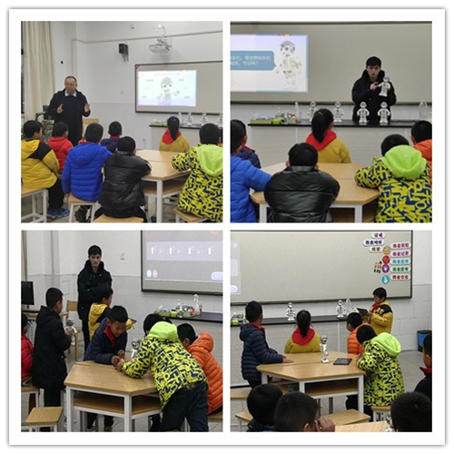 活动中,王老师首先以“与你作对”小游戏进行破冰和热身,调动学生们的积极性;接着从播放“Walker人工智能人形机器人”视频入手,并通过ALpha Ebot和Qrobot两个机器人的现场表演让学生对人工智能和机器人有了直观的感受和体验;最后工作室成员惠旺同学对悟空机器人的构成和PRP编程的操作步骤进行了详细讲解,并以图文展示结合实践操作的形式来帮助学生加强理解,工作室的其他成员随时为每组学生进行指导和答疑。