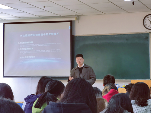 孙学忱总经理是我校2008届毕业生,现任南京市环保产业协会常务理事,民革江宁总支综合支部副主委,南京市江宁区科协委员,受聘多所院校创业导师,曾参与江苏省绿巢环保创业大赛、句容市“福地青年英才”创业大赛等多项创业大赛。讲座中,他结合个人创业经历分享,阐述了创新创业活动的意义、现状和未来发展趋势。重点为同学们讲解了创业团队建立的基本方式、影响因子、股权配比等一般性团队组建知识,同时,针对初创型小微企业的商业计划书撰写进行了辅导。