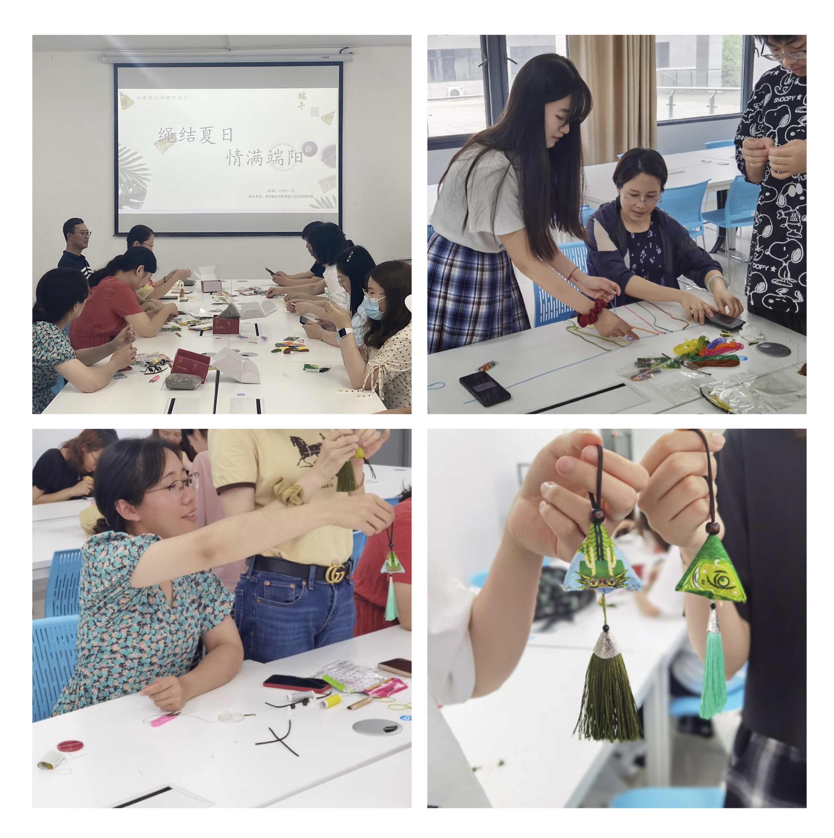 活动伊始,主持人将端午节的由来及其传统习俗娓娓道来,引出传统节日的历史厚重之处。紧接着的是传统文化知识问答环节,面对端午风俗文化的知识考验,大家踊跃作答,现场气氛一度火热。随后,主持人播放香囊与鸭蛋网的制作视频并现场进行教学演示,在爱意暖暖,其乐融融的氛围中,师生一起制香囊、做鸭蛋网,用心体悟传统民俗。活动在欢乐的气氛中逐渐步入尾声。
