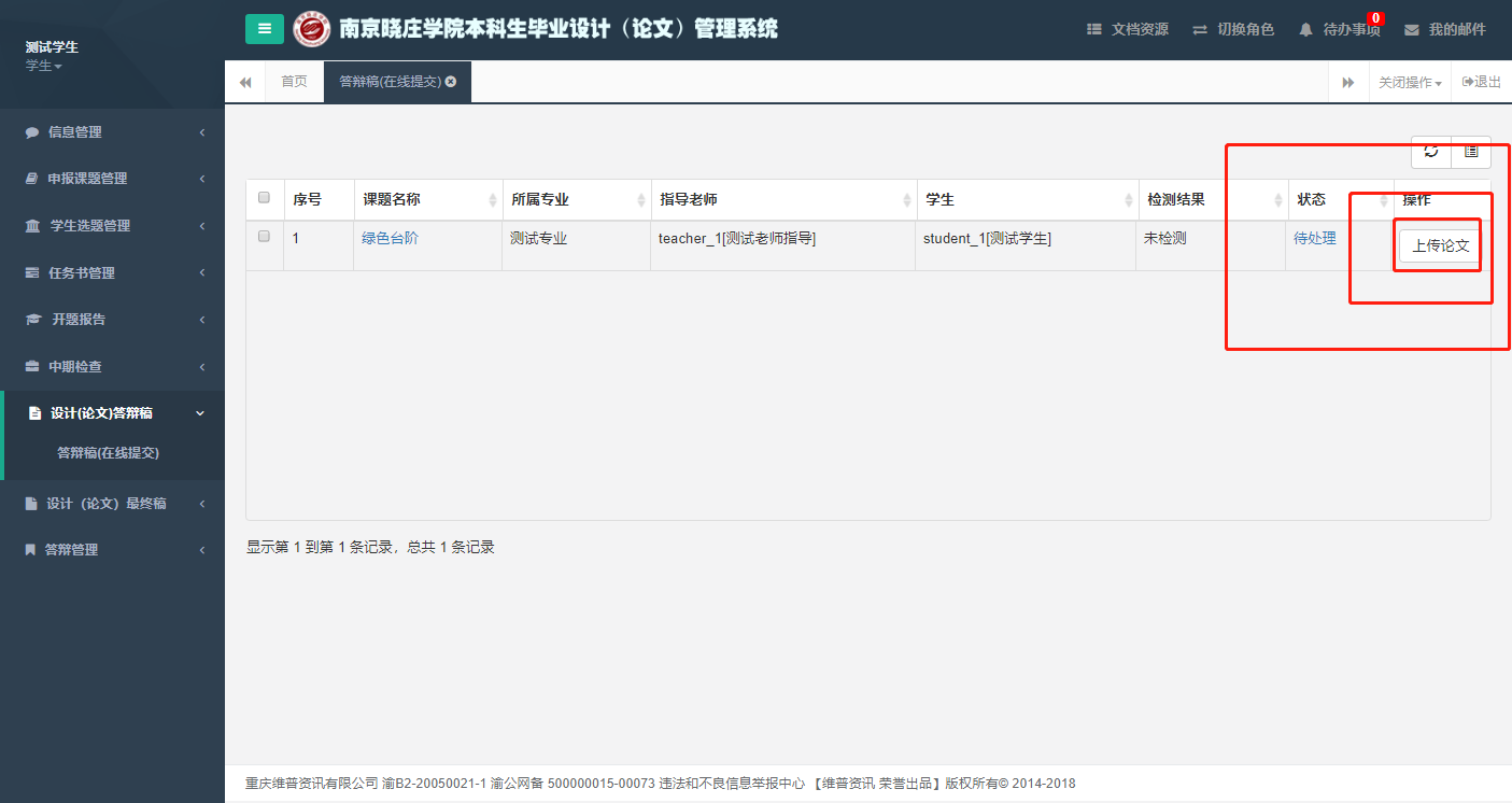 由学生在毕设系统-答辩稿中点击“上传论文”