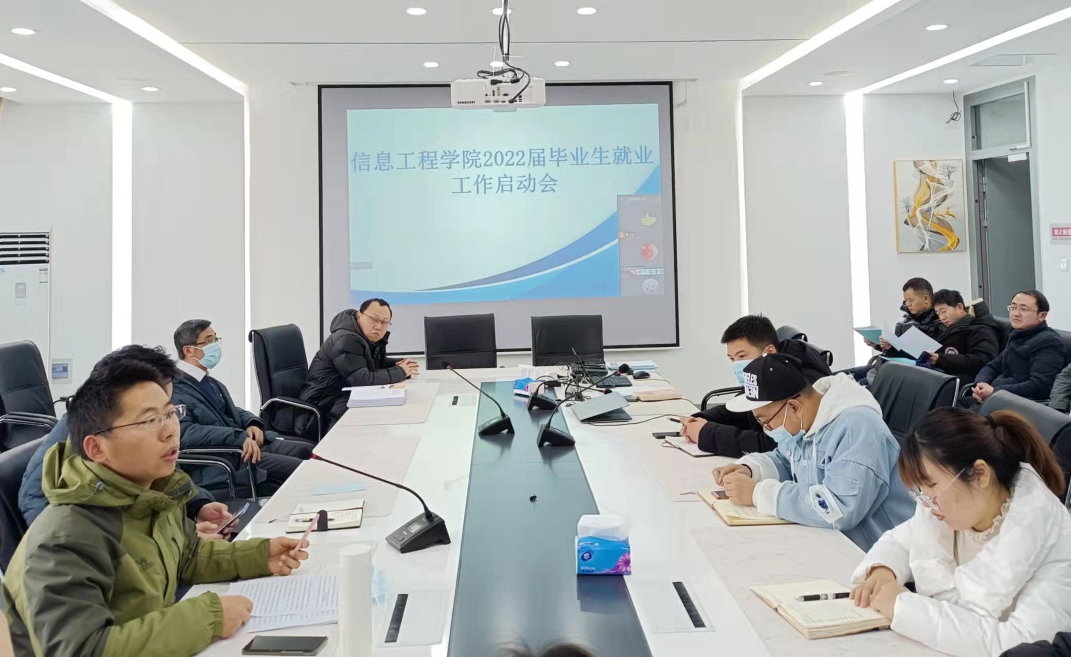 2月22日,我院在工科楼510会议室召开2022届毕业生就业工作推进会。院长赵向军、院党委副书记陈华锋、副院长袁俊、倪震、校企合作单位相关督导老师以及全体毕业班辅导员、班主任参加会议。会议由陈华锋主持。