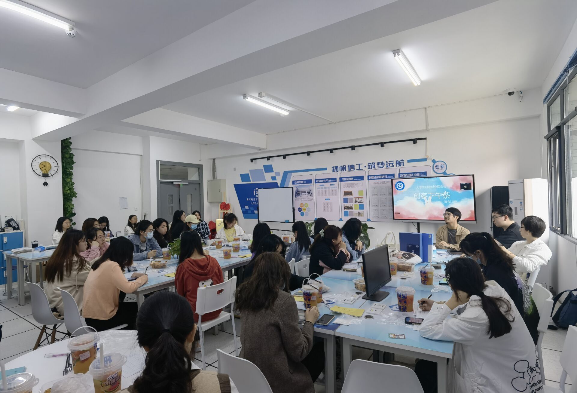 3月13日下午,信息工程开元官方网站大学生创新创业联合会在工科楼南401开展本学期第一期“创客下午茶”活动。此次活动以“线上+线下”相结合的方式开展,由姜涵及其双创项目团队担任主讲嘉宾,该团队拥有“互联网+”、“挑战杯”、“创青春”、“赢在海陵”等创新创业大赛经验,并斩获多项省级荣誉。