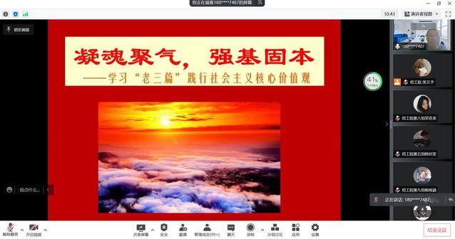刘教授以“凝魂聚气、强基固本”为题,系统阐述了社会主义核心价值观的科学内涵,分析了社会主义核心价值观的重要意义。他教育广大积极分子要学习阳早、寒春精神,学习他们真正执着于理想和信仰,真正认真做人做事,真正扎根于人民之中。接着刘教授带领入党积极分子们重温“老三篇”丰富的思想内涵。“老三篇”是共产党人的“道德经”,讲述了三个“凡人不凡”之事,书写了共产党人的宗旨观、群众观、人生观、价值观,在当时革命斗争的环境下,成为党领导人民攻坚克难、凝心聚力,推动革命取得胜利的精神力量。他希望作为入党积极分子,要把社会主义核心价值观融化在自己的思想里,落实自己的行动中,让青春在实现中国梦的伟大征程上焕发光彩。