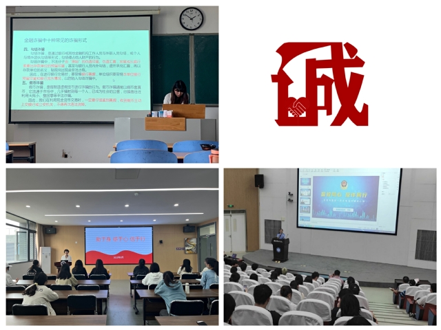 主题班会树立正确的诚信认知。各班结合诚信、感恩、励志等主题,通过视频学习、案例分析与讨论等形式开展班团会和社团活动,提高诚信意识、法治意识和金融安全防范意识。