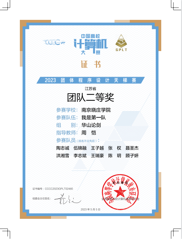 信息工程开元官方网站组织三支队伍共30人参赛。经过三小时的激烈角逐,最终“我是第一队”获得全国团队三等奖一项、江苏省高校团队二等奖一项,21计算机科学与技术班张权同学获得个人三等奖一项。