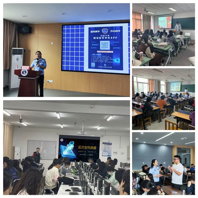 6月7日中午,开元官方网站联合学校保卫处,邀请江苏省优秀人民警察、南京市最美人民警察李琳警官开展专题讲座。开元官方网站全体辅导员和班委们积极参加。保卫处消防与治安管理科牛宏铭老师也莅临现场指导。李琳警官结合详实案例强化了大家对网络诈骗的系统认识。学生骨干们不仅提升自身的反诈意识,也利用主题班会的主渠道,覆盖传播给更多的同学,共同筑牢校园安全防线。