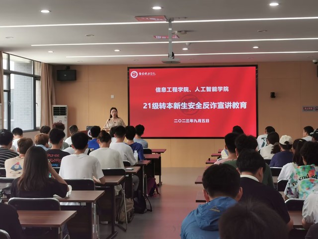 为提高我院21级转本新生网络电信反诈防骗意识,在新生刚入学的重要阶段,我院第一时间组织开展了覆盖全体转本新生的网络电信防诈攻略专题讲座。
