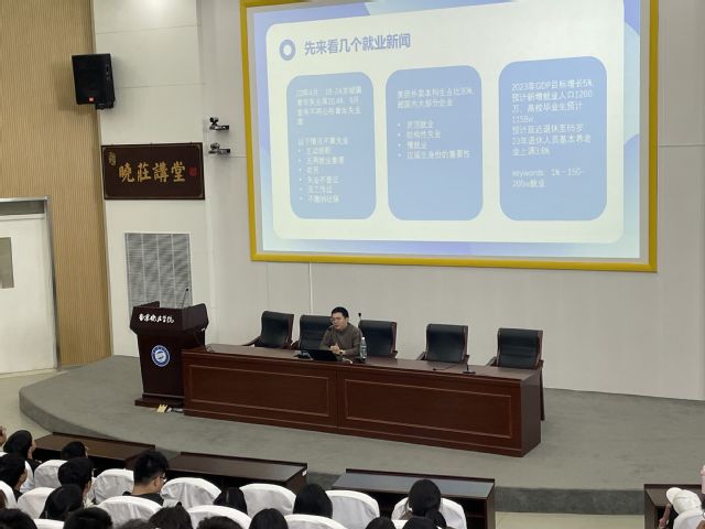 主讲人从“IT职业方向行业现状”、“IT职业方向行业趋势”、“大学阶段该如何准备”三个方面进行了细致阐述,让同学们对计算机行业有了更加深刻和具体的认识。任老师以企业招聘与人才培养的角度为切入口,再三强调了计算机专业学生项目经验及实习经历的重要性,劝勉大家注重实习实践,抓住每一次实训、大赛机会,积累实战经验,丰富简历。互动环节,同学们积极思考、踊跃提问,现场交流气氛热烈。