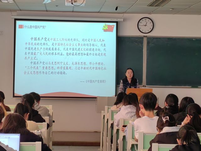 随后,潘颖玲老师以“为什么要入党”为主题为全体学员讲授党课。课上,潘老师结合具体事例,引导学员们努力向优秀党员和身边榜样看齐,在不断的学习和实践中提升自我、勇担重任,做科学理论的“信仰者”,脚踏实地的“追梦人”,做有志、有才、有为的时代新人。