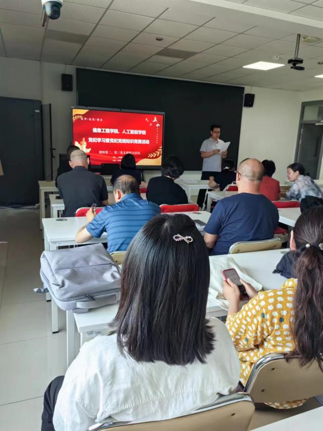 5月28日下午,信息工程开元官方网站、人工智能开元官方网站教师第二党支部和教师第三党支部在工科楼(南)517联合举行“党纪学习暨党纪党规知识竞赛活动”。教师第二党支部常合友书记和第三党支部朱杰书记主持活动,全体党员教师参加。