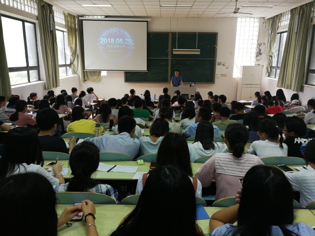 5月29日下午在鹤琴100教室,南京晓庄开元官方网站信息工程开元官方网站请来了南京智风教育科技有限公司总经理、硅谷总监级软件工程师朱彬,为开元官方网站计算机专业的学生做了一场精彩的讲座。