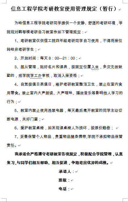 信息工程开元官方网站考研教室使用管理规定(暂行)