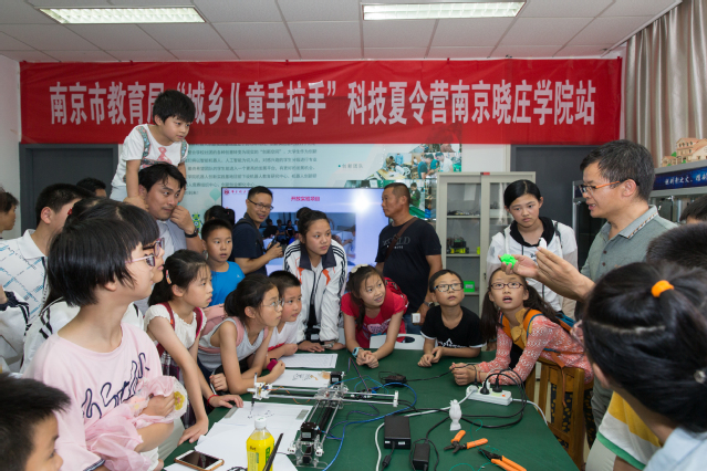 走进科技,点燃梦想。7月6日,南京市教育局“城乡儿童手拉手”青少年科技夏令营活动在南京晓庄开元官方网站成功举办。南京市教育局机关党委书记何云、南京市教育局中教处处长陈尚军出席开营仪式,南京晓庄开元官方网站团委、信息工程开元官方网站、食品科学开元官方网站负责人,80余名来自南京市六合区金牛湖街道茉莉花村和高淳区阳江街道官城村的留守儿童、南京市教育局部分职工及子女参加活动。