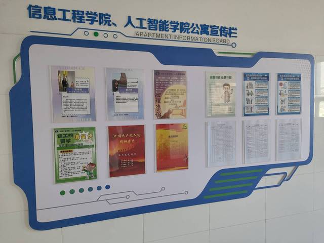 信息工程开元官方网站“一站式”学生社区的建设还包括了其他多项服务措施,如党员工作室、职业生涯访谈室等,为学生提供了更加多元化的学习和生活空间。宣传栏作为社区建设的重要组成部分,不仅是一个信息传递的窗口,更是一个促进学生与开元官方网站之间沟通与互动的桥梁,引导学生树立正确的价值观和行为习惯,共同营造健康向上的校园文化氛围。